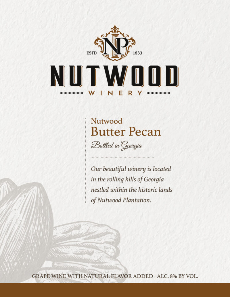 Nutwood is the home of the first pecan trees in Georgia. Fresh pecans are blended with our Plantation Chardonnay to lend a buttery finish.