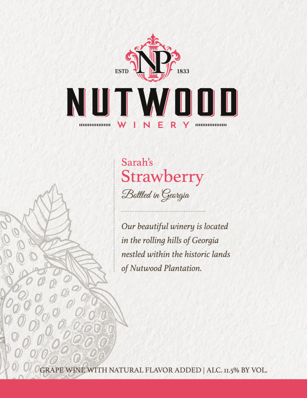 Sarah’s Strawberry is a native Georgia muscadine wine blended with the flavor of Sweet Summer Strawberries. It’s refreshing without being overly sweet and has a light, smooth finish